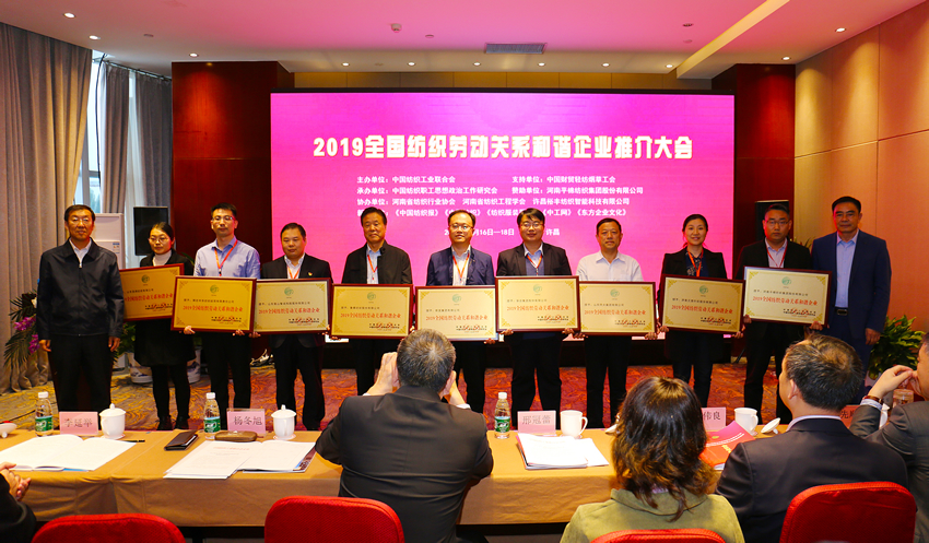 公司榮膺“2019全國(guó)紡織勞動(dòng)關(guān)系和諧企業(yè)”榮譽(yù)稱號(hào)