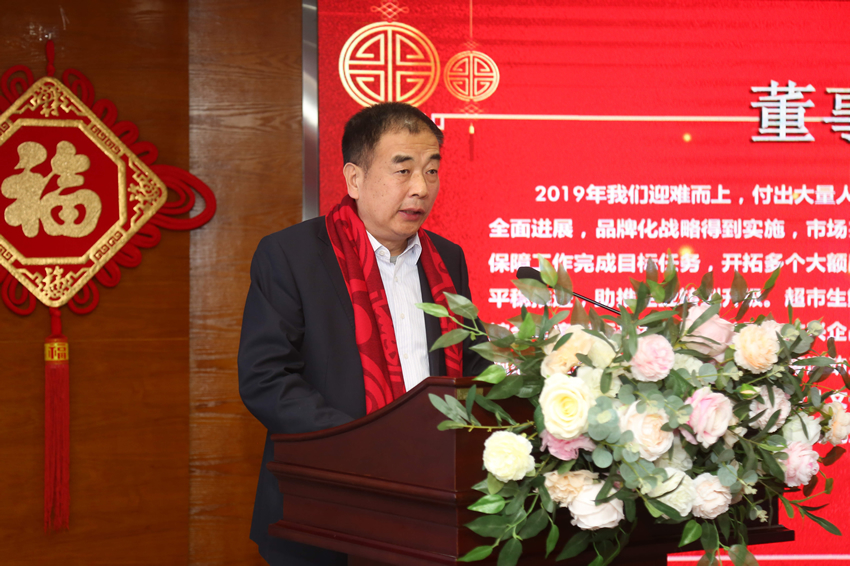 程亞利董事長指出,2020年是企業的轉折年、關鍵年、提升年,要繼續堅持“提質增效”目標不動搖,全力推進經營工作。把好決策、執行、考核、監督四道關;做好使用人、發展人與人才梯隊建設工作;以經營創新改革為切入點,全力提高管理水平和經營效能,用“新發展”來解決企業面臨的主要矛盾和基本問題。“致辭”就經營改革創新提出一攬子部署,為年度工作指明方向:我們要懷抱“豐華夢”這一崇高愿景,振奮開拓創新的精神,用能擔當的鐵肩膀、干成事的真本領,在“非常之時”行“非常之事”,人人走新路,個個有作為。會上,公司對年度領軍人物、優秀管理者、先進部室、先進工作者,以及超市優秀主管、超市優秀員工和“學習強國”積極分子進行了表彰,而最后的董事長特別獎更是引來臺下陣陣掌聲。程亞利董事長對受到特別表彰的六個單位的事跡如數家珍,一一道來,他們無怨無悔落地執行、不辭勞苦熱情服務等精神深深鐫刻在每一位員工心里。董事長最后為大家加油鼓勁:“艱難和困苦,休想阻擋我們前進的步伐;困難和壓力,只會使我們變得更加堅強。”“功成必定有我,創業舍我其誰!”